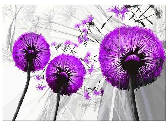 Úvod » Obrazy » Obrazy na plátne » Kvety » Moderný obraz na stenu Púpavy vo fialovej