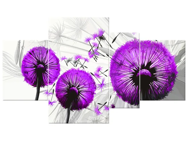 Úvod » Obrazy » Obrazy na plátne » Kvety » Moderný obraz na stenu Púpavy vo fialovej
