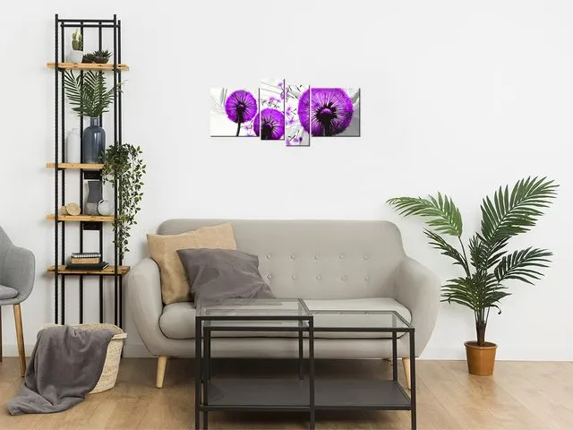 Úvod » Obrazy » Obrazy na plátne » Kvety » Moderný obraz na stenu Púpavy vo fialovej