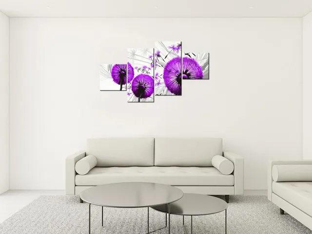 Úvod » Obrazy » Obrazy na plátne » Kvety » Moderný obraz na stenu Púpavy vo fialovej
