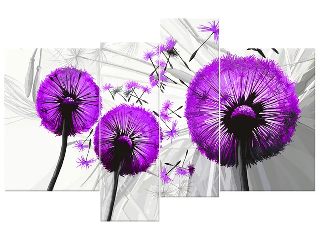 Úvod » Obrazy » Obrazy na plátne » Kvety » Moderný obraz na stenu Púpavy vo fialovej