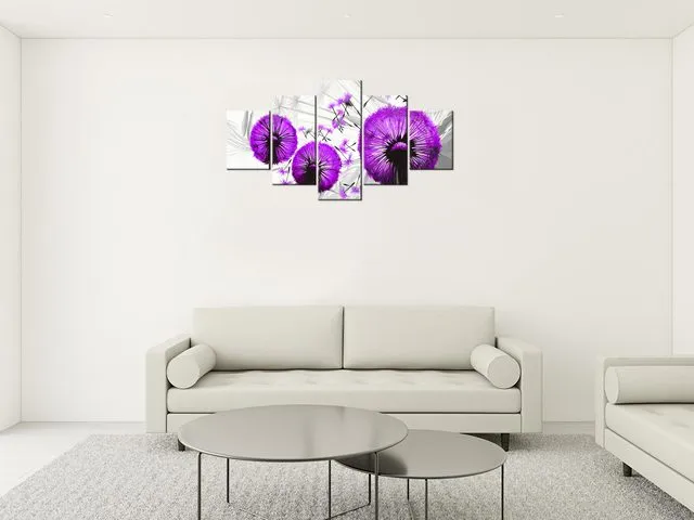 Úvod » Obrazy » Obrazy na plátne » Kvety » Moderný obraz na stenu Púpavy vo fialovej