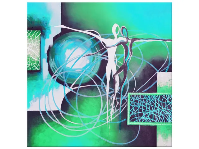 Úvod » Obrazy » Obrazy na plátne » Abstrakt » Moderný obraz na stenu Tancujúce postavy v tyrkyse