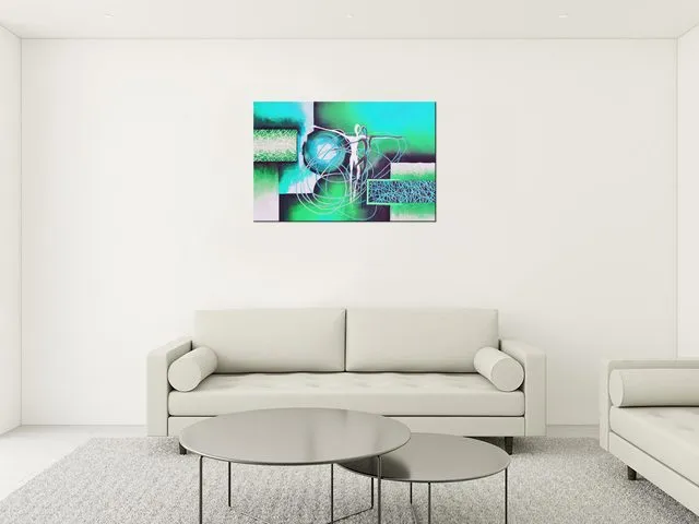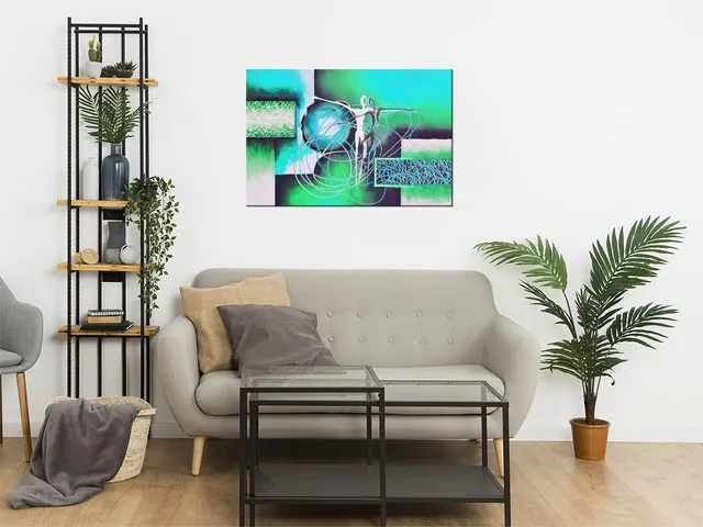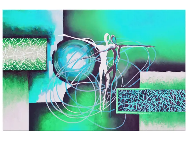 Úvod » Obrazy » Obrazy na plátne » Abstrakt » Moderný obraz na stenu Tancujúce postavy v tyrkyse
