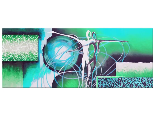 Úvod » Obrazy » Obrazy na plátne » Abstrakt » Moderný obraz na stenu Tancujúce postavy v tyrkyse