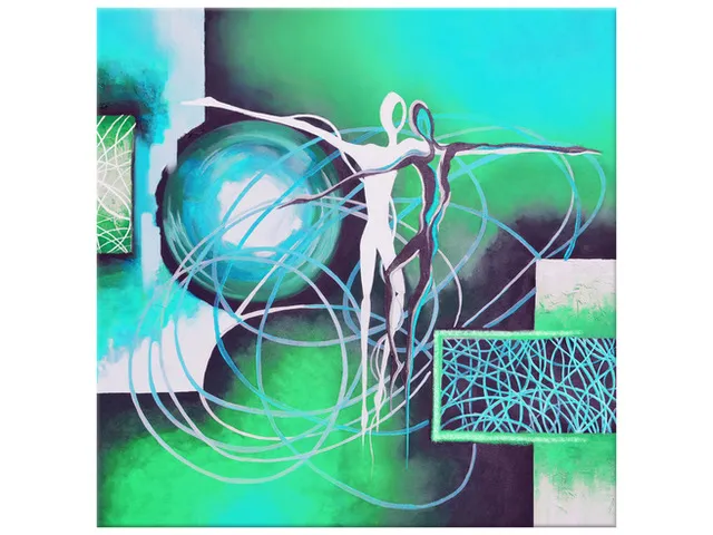 Úvod » Obrazy » Obrazy na plátne » Abstrakt » Moderný obraz na stenu Tancujúce postavy v tyrkyse