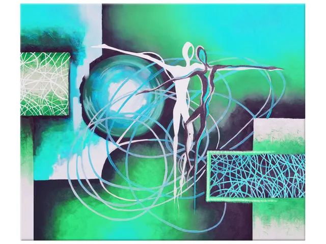 Úvod » Obrazy » Obrazy na plátne » Abstrakt » Moderný obraz na stenu Tancujúce postavy v tyrkyse