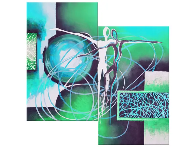 Úvod » Obrazy » Obrazy na plátne » Abstrakt » Moderný obraz na stenu Tancujúce postavy v tyrkyse