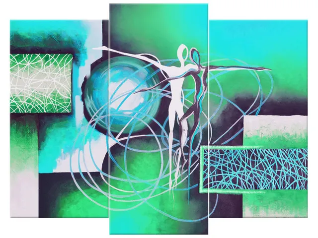 Úvod » Obrazy » Obrazy na plátne » Abstrakt » Moderný obraz na stenu Tancujúce postavy v tyrkyse