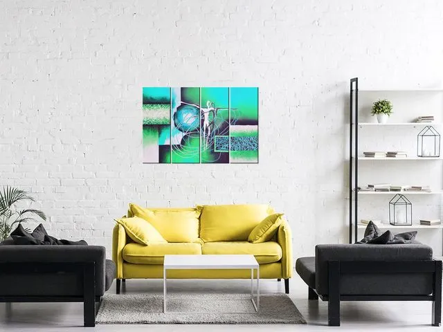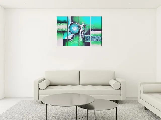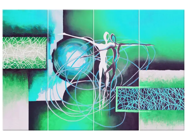 Úvod » Obrazy » Obrazy na plátne » Abstrakt » Moderný obraz na stenu Tancujúce postavy v tyrkyse