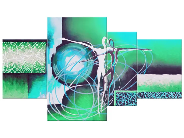 Úvod » Obrazy » Obrazy na plátne » Abstrakt » Moderný obraz na stenu Tancujúce postavy v tyrkyse