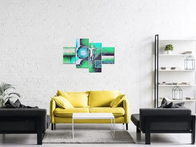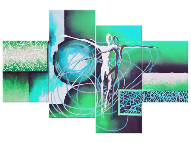 Úvod » Obrazy » Obrazy na plátne » Abstrakt » Moderný obraz na stenu Tancujúce postavy v tyrkyse