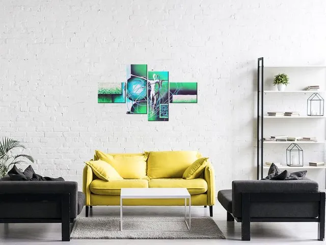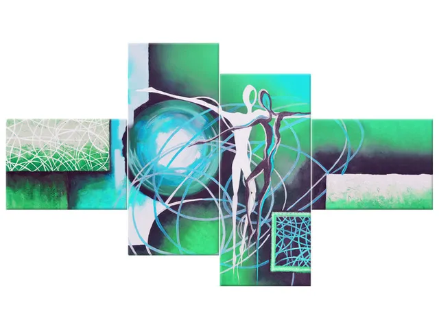 Úvod » Obrazy » Obrazy na plátne » Abstrakt » Moderný obraz na stenu Tancujúce postavy v tyrkyse