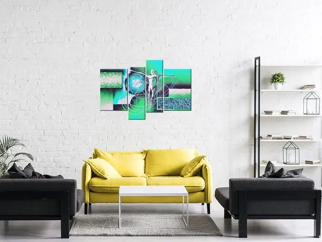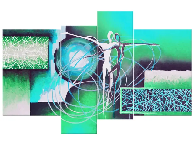 Úvod » Obrazy » Obrazy na plátne » Abstrakt » Moderný obraz na stenu Tancujúce postavy v tyrkyse