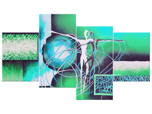 Úvod » Obrazy » Obrazy na plátne » Abstrakt » Moderný obraz na stenu Tancujúce postavy v tyrkyse