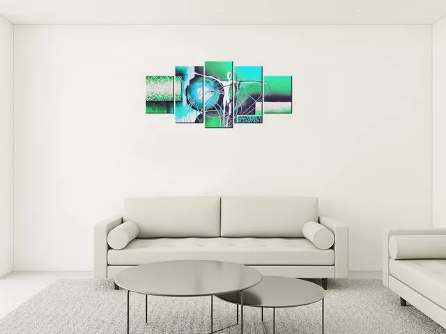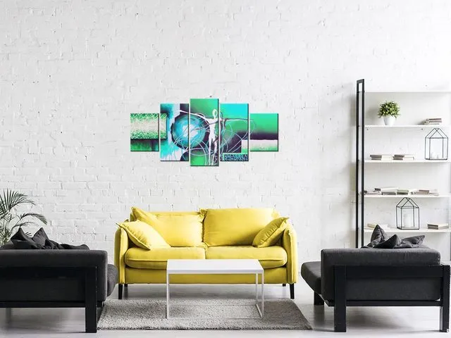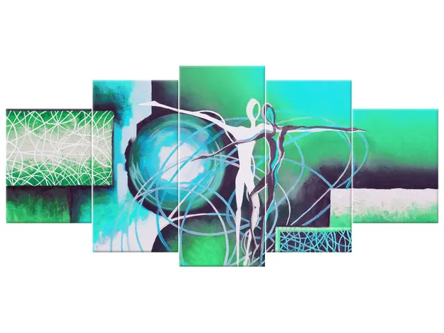 Úvod » Obrazy » Obrazy na plátne » Abstrakt » Moderný obraz na stenu Tancujúce postavy v tyrkyse