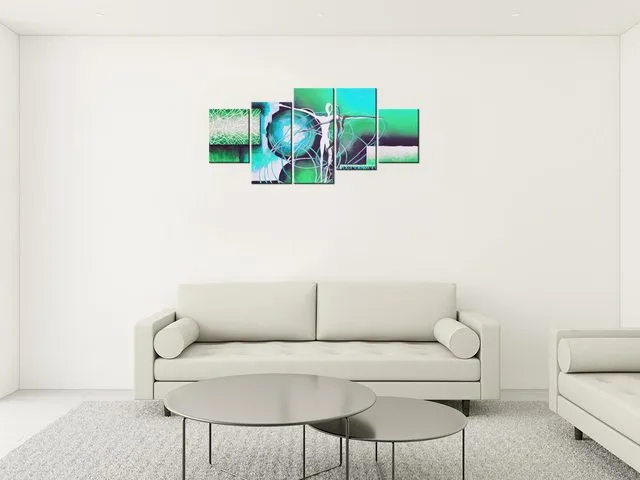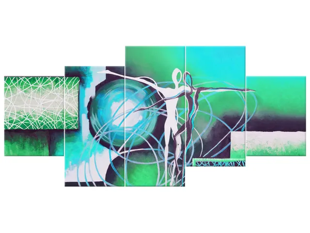 Úvod » Obrazy » Obrazy na plátne » Abstrakt » Moderný obraz na stenu Tancujúce postavy v tyrkyse