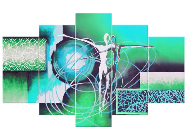 Úvod » Obrazy » Obrazy na plátne » Abstrakt » Moderný obraz na stenu Tancujúce postavy v tyrkyse