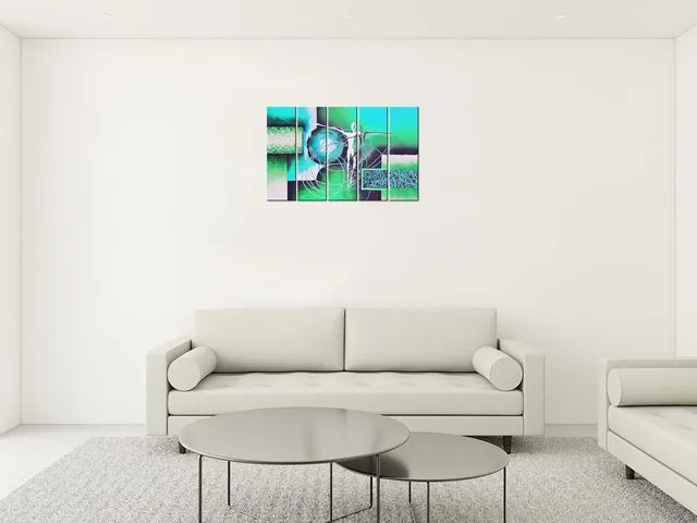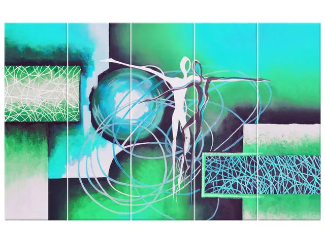 Úvod » Obrazy » Obrazy na plátne » Abstrakt » Moderný obraz na stenu Tancujúce postavy v tyrkyse
