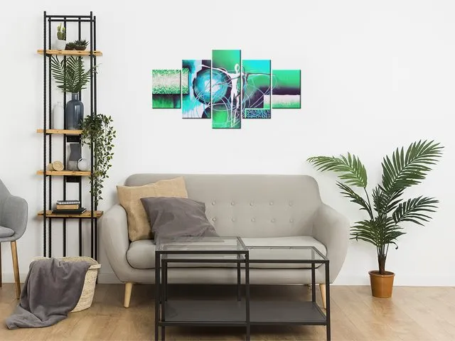 Úvod » Obrazy » Obrazy na plátne » Abstrakt » Moderný obraz na stenu Tancujúce postavy v tyrkyse