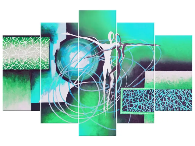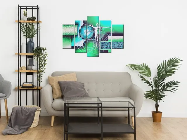 Úvod » Obrazy » Obrazy na plátne » Abstrakt » Moderný obraz na stenu Tancujúce postavy v tyrkyse