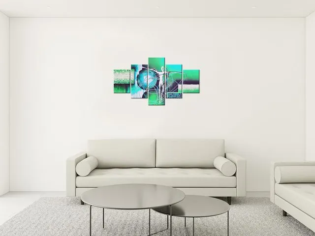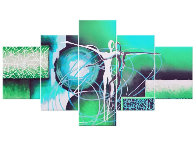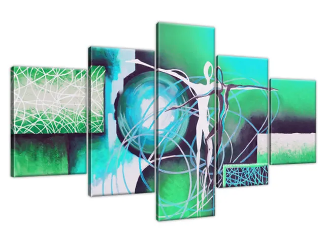 Úvod » Obrazy » Obrazy na plátne » Abstrakt » Moderný obraz na stenu Tancujúce postavy v tyrkyse
