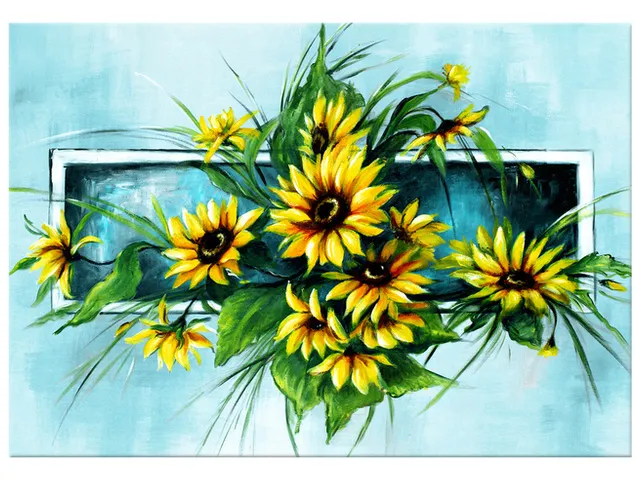 Úvod » Obrazy » Obrazy na plátne » Kvety » Moderný obraz na stenu Tyrkysové slnečnice