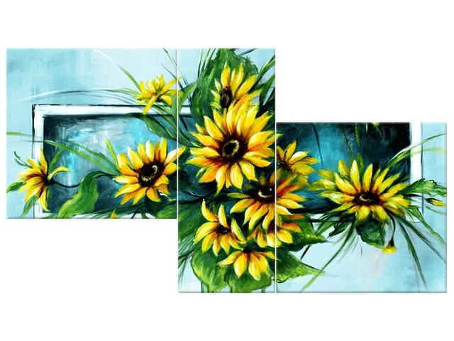 4589A_3V Moderný obraz na stenu Tyrkysové slnečnice |