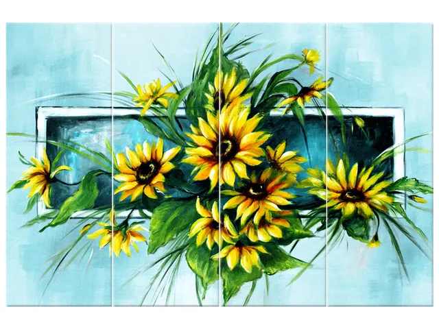 Úvod » Obrazy » Obrazy na plátne » Kvety » Moderný obraz na stenu Tyrkysové slnečnice