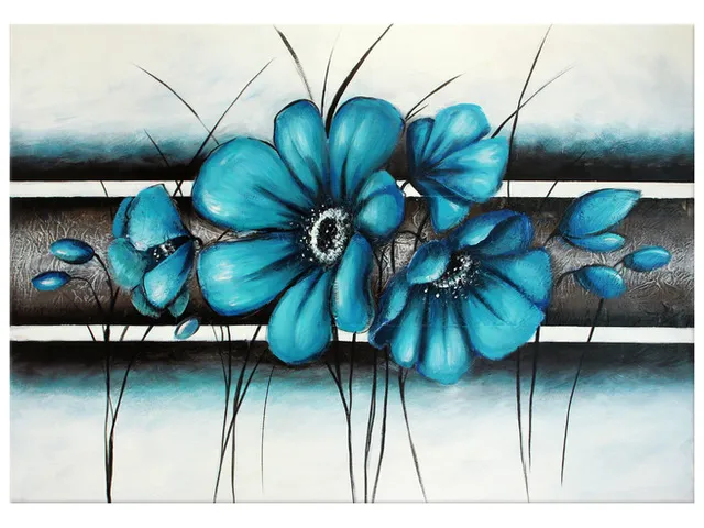 Barion Pixel Moderný obraz ručne maľovaný Tyrkysové kvety