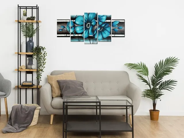 Úvod » Obrazy » Obrazy ručne maľované » Moderný obraz ručne maľovaný Tyrkysové kvety