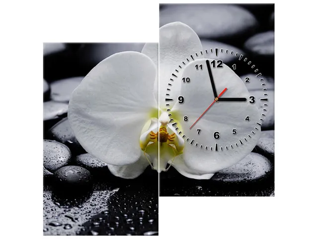Úvod » Obrazy » Obrazy s hodinami » Moderný obraz s hodinami Biela orchidea
