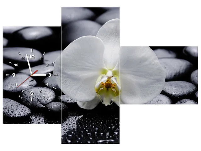 Úvod » Obrazy » Obrazy s hodinami » Moderný obraz s hodinami Biela orchidea