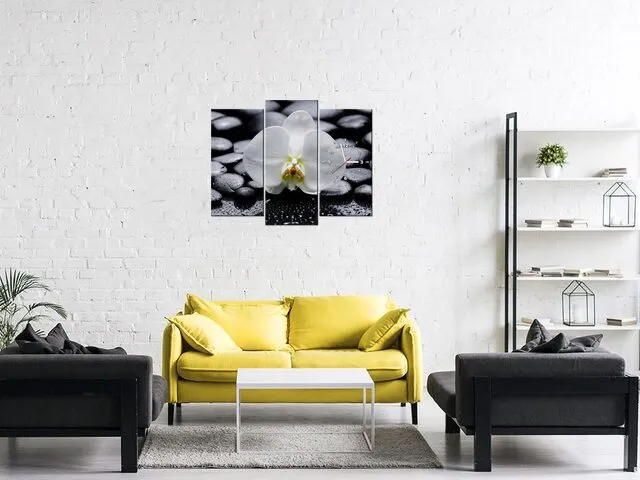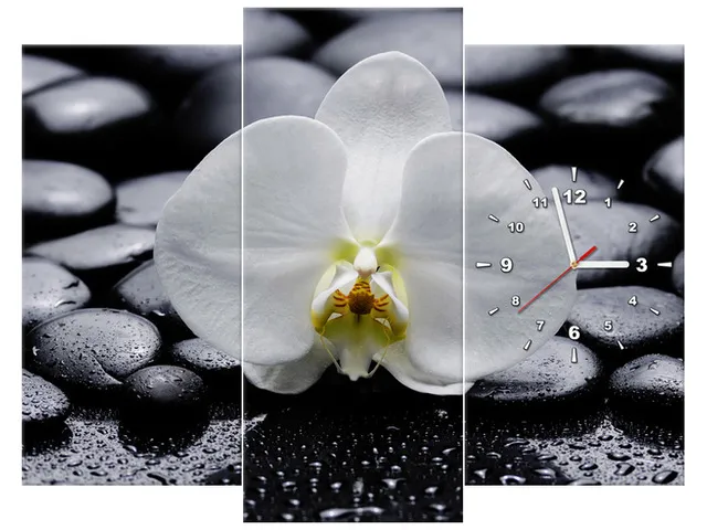 Úvod » Obrazy » Obrazy s hodinami » Moderný obraz s hodinami Biela orchidea