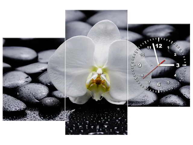 Úvod » Obrazy » Obrazy s hodinami » Moderný obraz s hodinami Biela orchidea