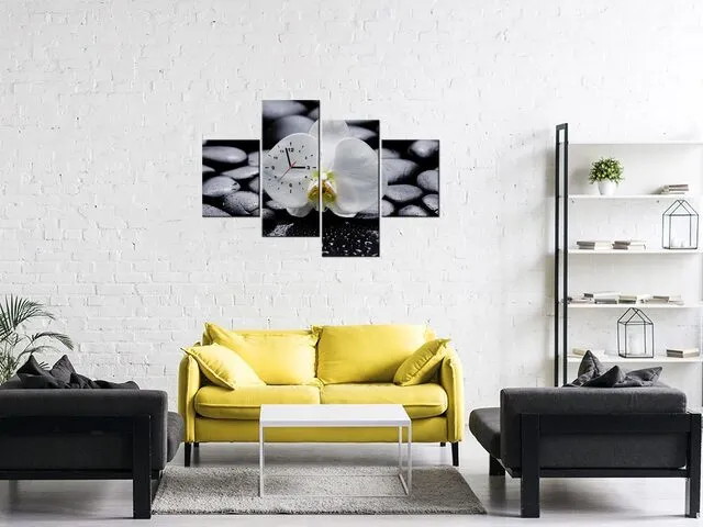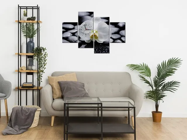 Úvod » Obrazy » Obrazy s hodinami » Moderný obraz s hodinami Biela orchidea