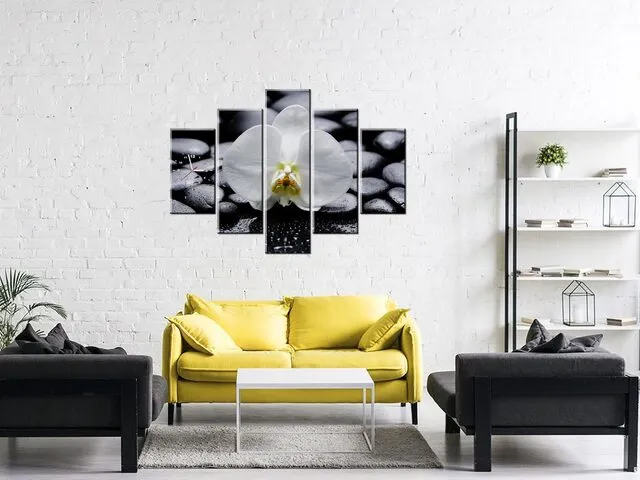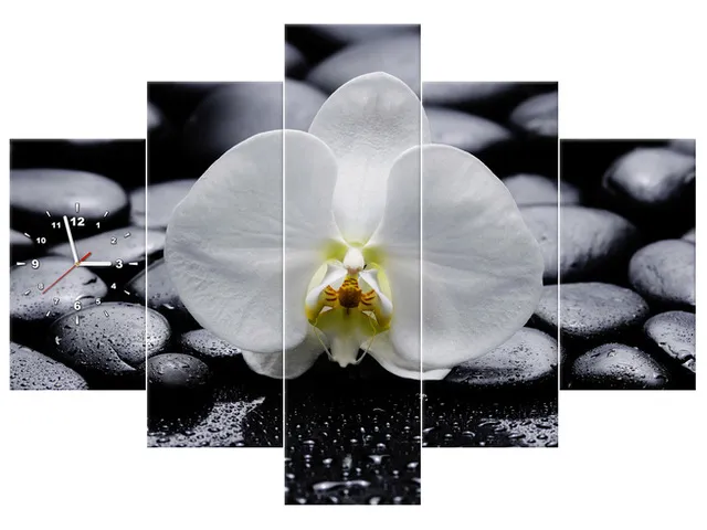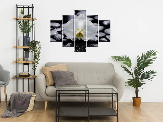 Úvod » Obrazy » Obrazy s hodinami » Moderný obraz s hodinami Biela orchidea