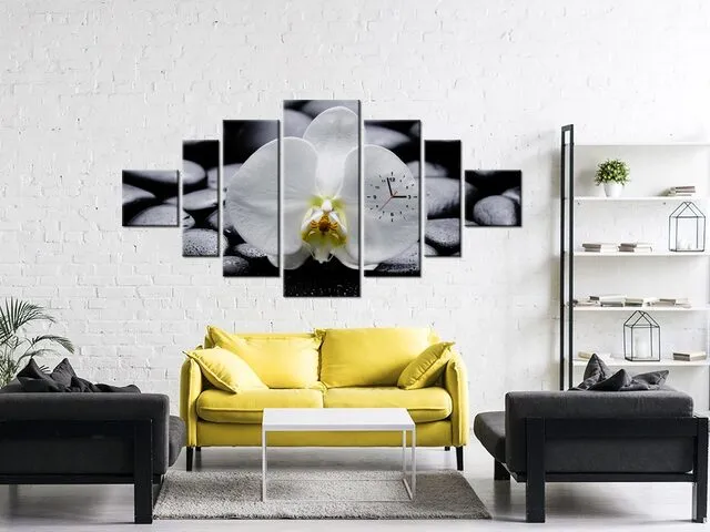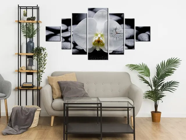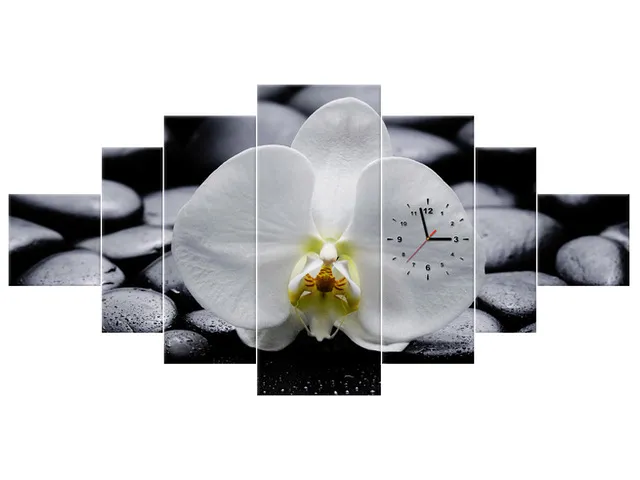 Úvod » Obrazy » Obrazy s hodinami » Moderný obraz s hodinami Biela orchidea