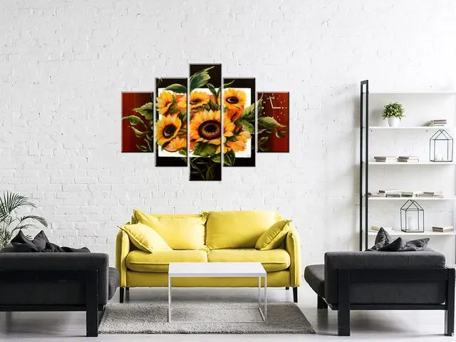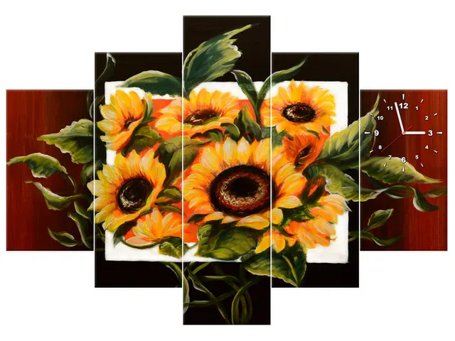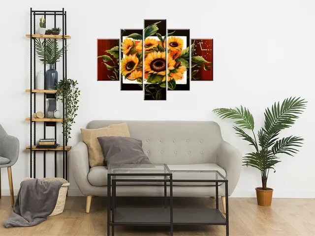 Úvod » Obrazy » Obrazy s hodinami » Moderný obraz s hodinami Čerstvé slnečnice