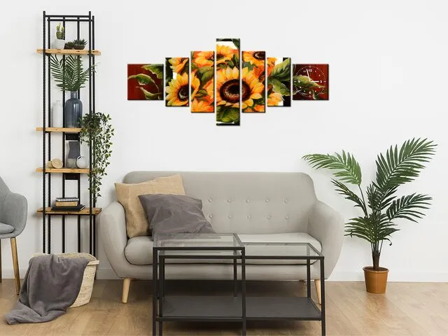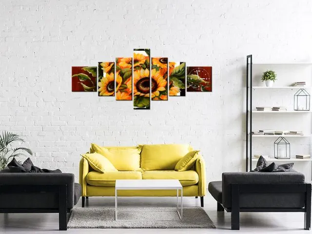 Úvod » Obrazy » Obrazy s hodinami » Moderný obraz s hodinami Čerstvé slnečnice