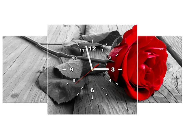 Úvod » Obrazy » Obrazy s hodinami » Moderný obraz s hodinami Červená ruža