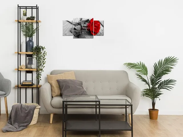 ZP1138A_3V Moderný obraz s hodinami Červená ruža |