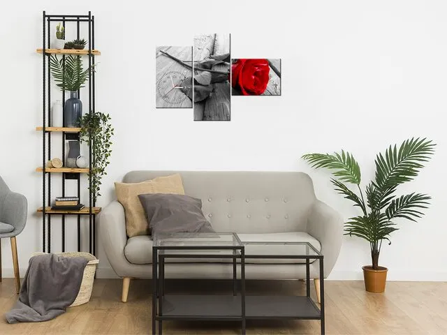 Úvod » Obrazy » Obrazy s hodinami » Moderný obraz s hodinami Červená ruža