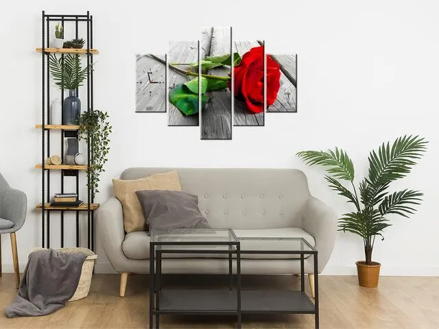 Úvod » Obrazy » Obrazy s hodinami » Moderný obraz s hodinami Červená ruža