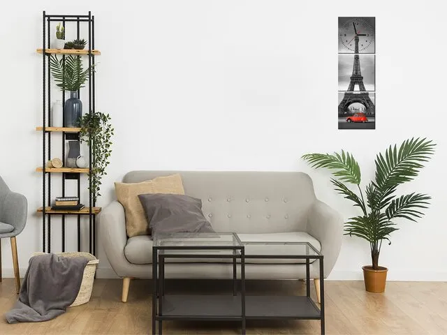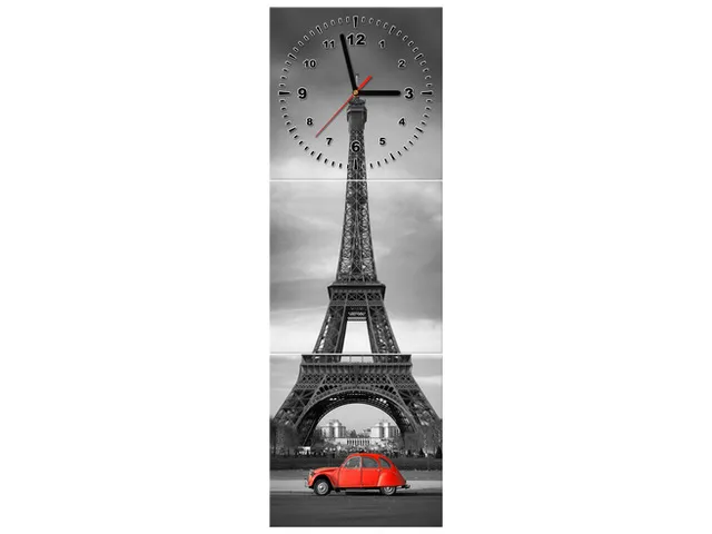 ZP1116A_3V Moderný obraz s hodinami Červené auto pred Eiffelovkou |