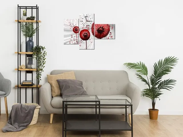 ZP5441A_3V Moderný obraz s hodinami Červené púpavy 3 |