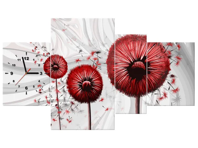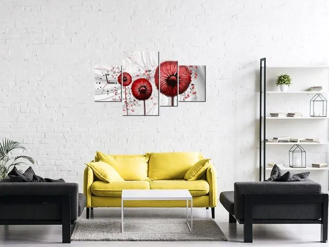 Úvod » Obrazy » Obrazy s hodinami » Moderný obraz s hodinami Červené púpavy 3