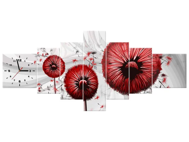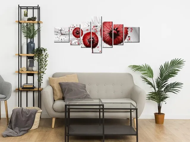 ZP5441A_5H Moderný obraz s hodinami Červené púpavy 3 |