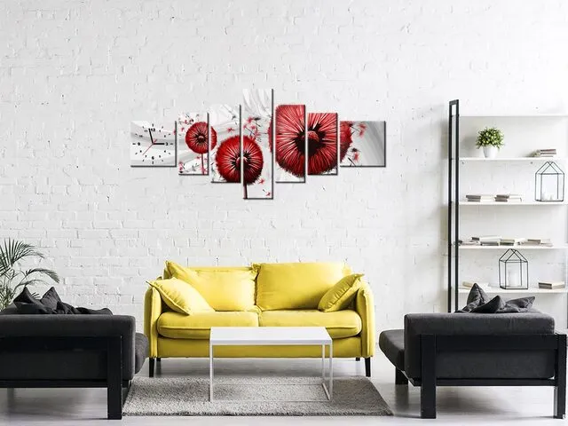 Úvod » Obrazy » Obrazy s hodinami » Moderný obraz s hodinami Červené púpavy 3