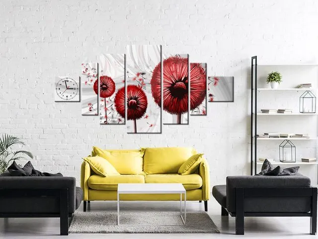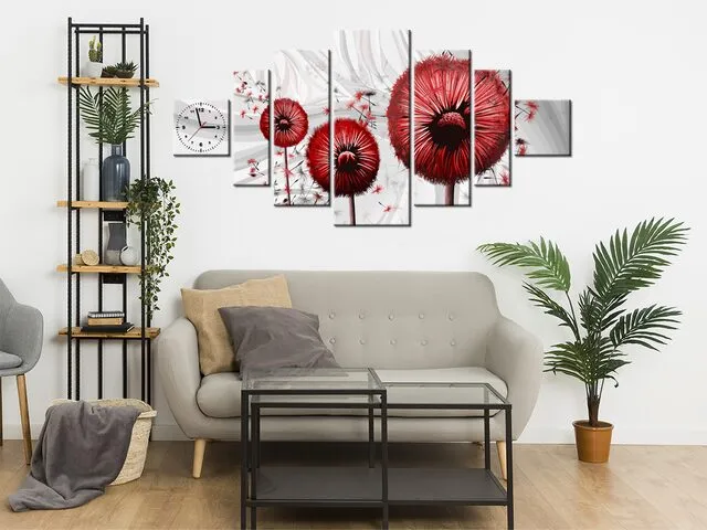 Úvod » Obrazy » Obrazy s hodinami » Moderný obraz s hodinami Červené púpavy 3